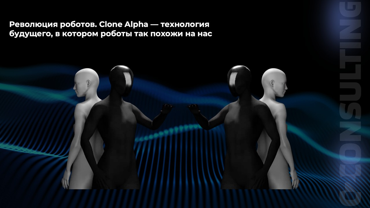 Главный двигатель прогресса – искусственный интеллект (ИИ). Современные роботы уже способны анализировать окружающую среду, адаптироваться к новым условиям и обучаться на собственных ошибках. Кроме того, появляются новые виды роботов, которые работают на воде и электричестве, а некоторые выглядят как человек, например робот Clone Alpha. Он сделан из особых биомиметических наноматериалов, которые имитируют работу человеческого тела.