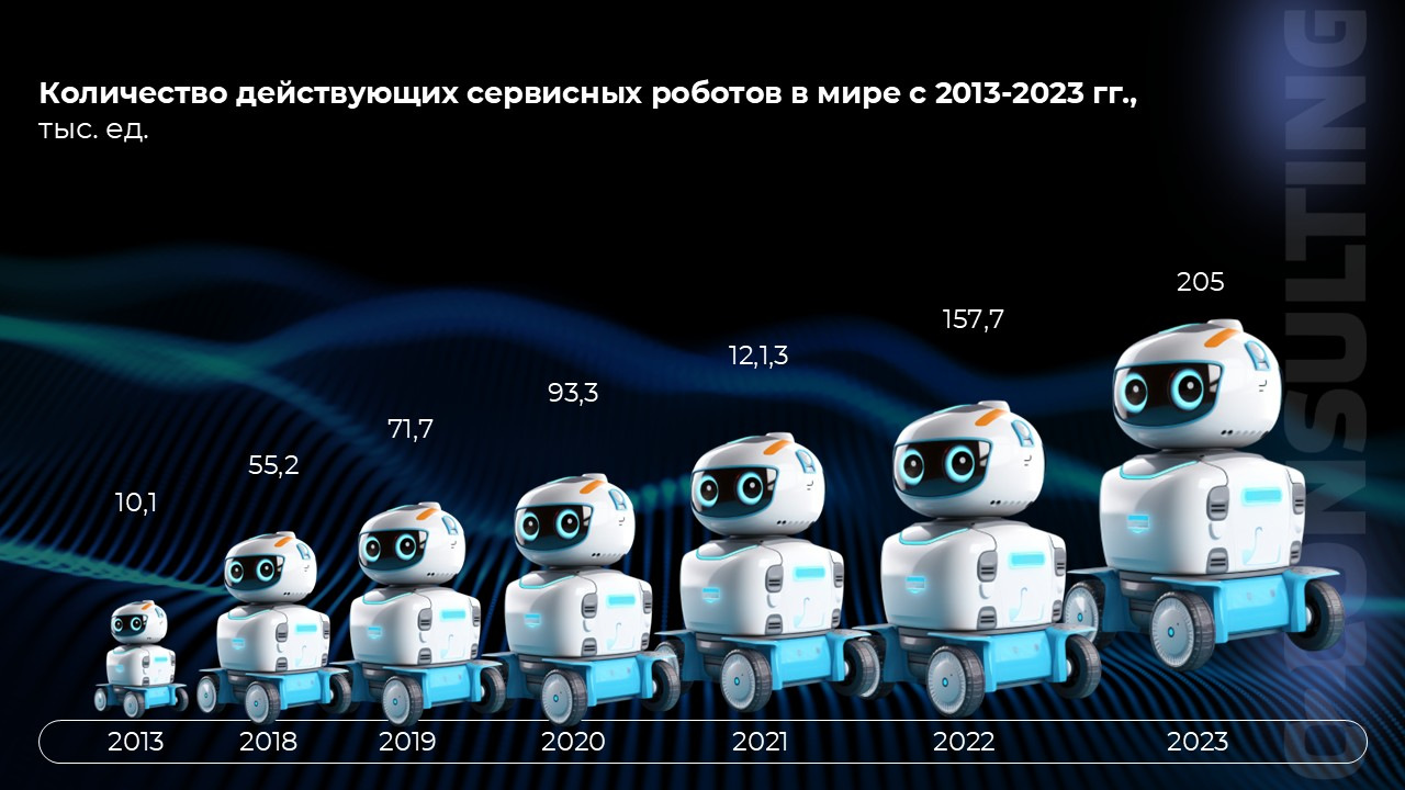 По итогам 2023 г. продажи профессиональных сервисных роботов по всему миру превысили 205 тысяч единиц.