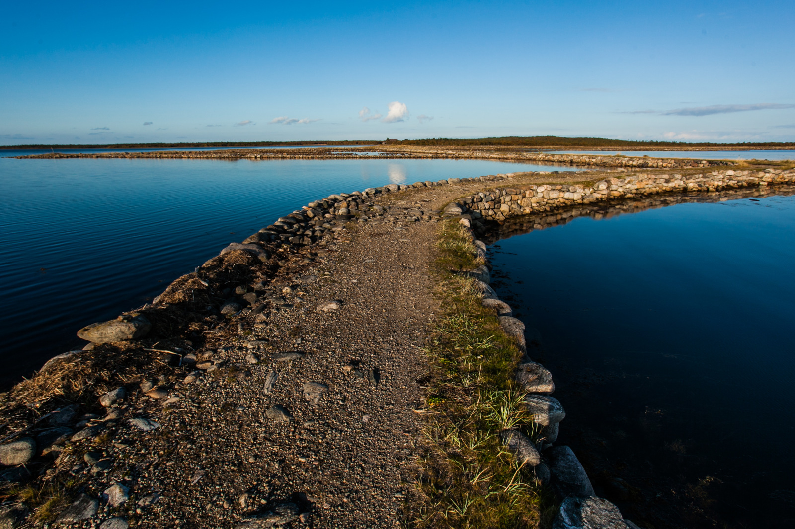 До Большой Муксалмы можно добраться не только пешком по дамбе, но и с комфортом на катере. С берега открываются красивые виды на каменистую, петляющую по проливу дорогу из крупных валунов. Особенно хорошо здесь перед закатом и ранним утром.