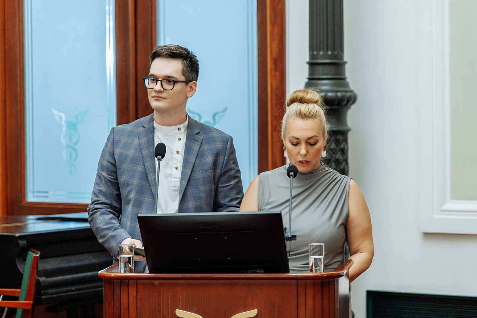 По доброй традиции мероприятий, проводимых АДКБ «Я Лидер», церемония награждения прошла в зале заседаний Конгресс-центра ТПП РФ. Статуэтки и дипломы «виновникам торжества» вручала уникальная пара ведущих – известная российская певица Юлия Лой и директор АДКБ «Я Лидер» Илья Листопадов. Поздравления сразу двух «деятелей» - культуры и бизнеса - воодушевили Лауреатов не меньше, чем роскошные композиции от авторской цветочной мастерской Дарьи Ромашевой «Следуй за цветами».