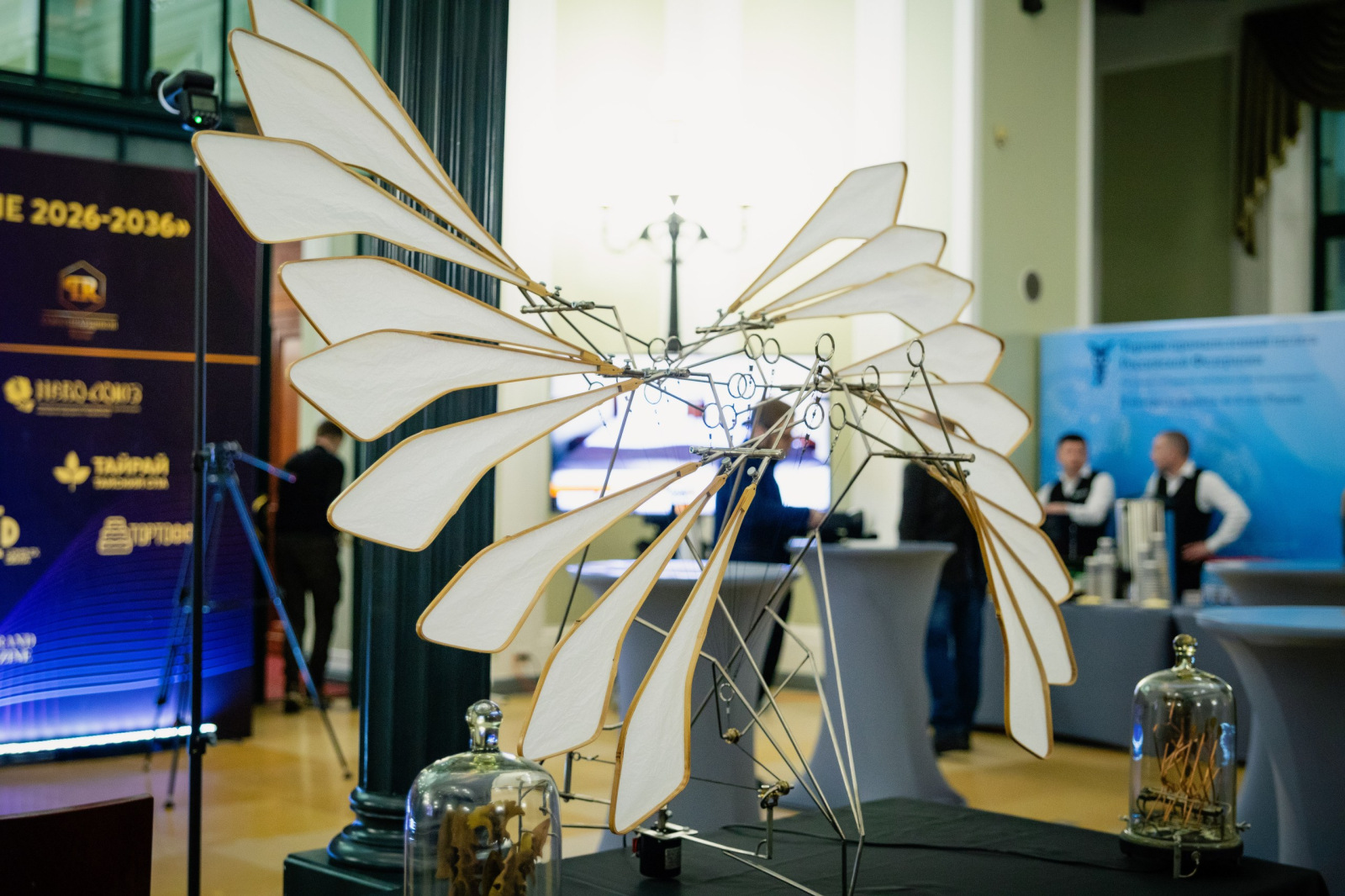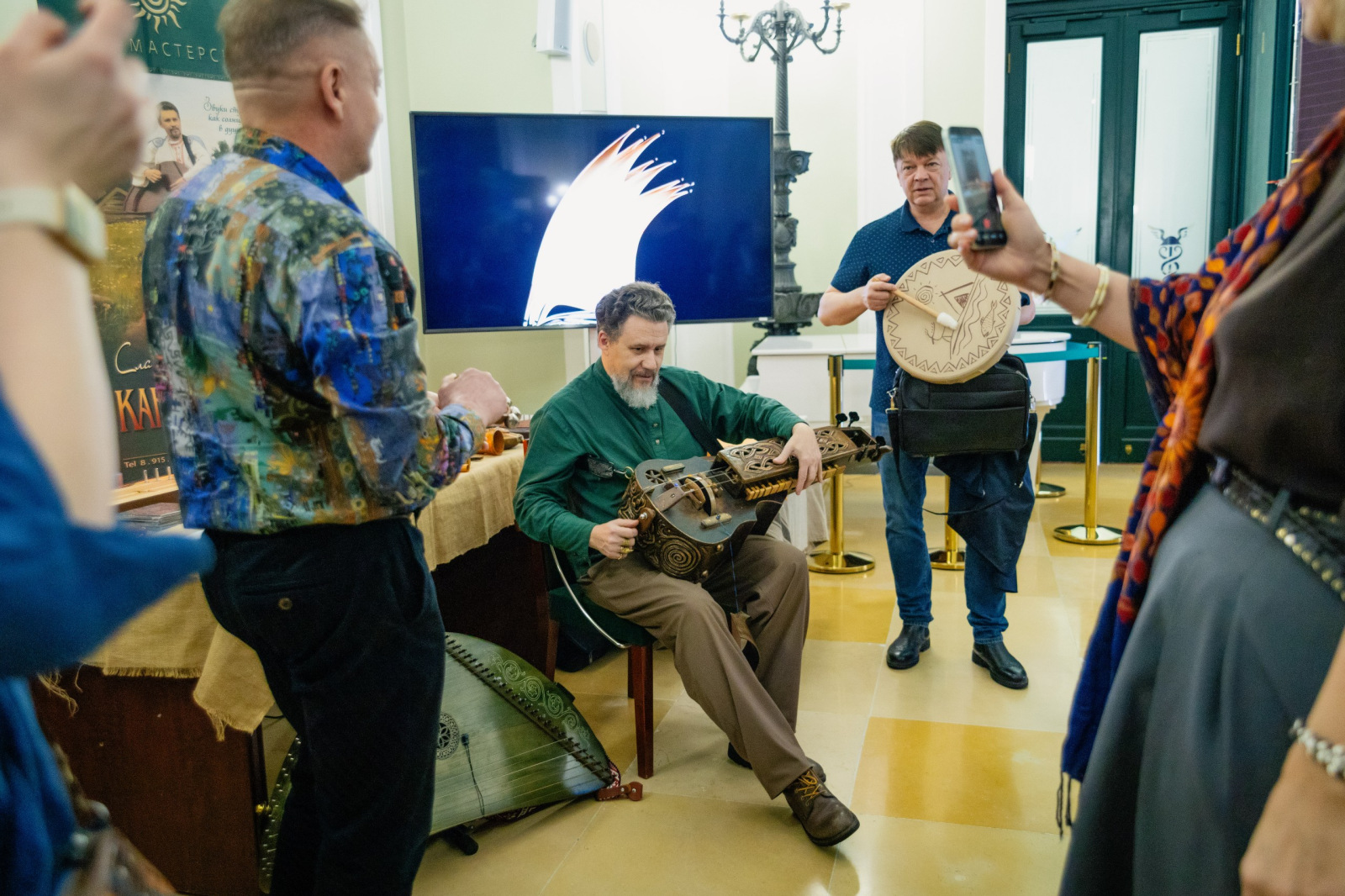 В рамках форума в фойе Конгресс-центра развернулась выставка членов Творческого Союза Художников ДПИ, резидентов «Уникальной России». Свои работы представили основатель и руководитель мастерской Дома Мишиных «Береслава-береста» Григорий Мишин – удивительный мастер, разработавший уникальную технологию создания скульптур из бересты и единственный в России и Мире работающий в технике скульптура из бересты; композитор, гусляр, продюсер, создатель музыки на гуслях к фильмам "Холоп", "Последний богатырь наследие", основатель этно-проекта "Кантелеонъ" Кирилл Богомилов, который в своём творчестве на живых инструментах воплощает мотивы разных эпох: от славянских былин и народного эпоса русских сказителей, до древних гласов и минезанга рыцарского средневековья.