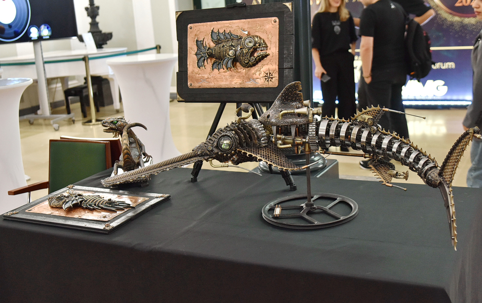 Была представлена коллекция работ Игоря Шевченко – ювелира, дизайнера, стеклодува, члена Союза художников России, автора эксклюзивных работ в стиле стимпанк, объединяющем футуристические технологии и ретроэстетику.