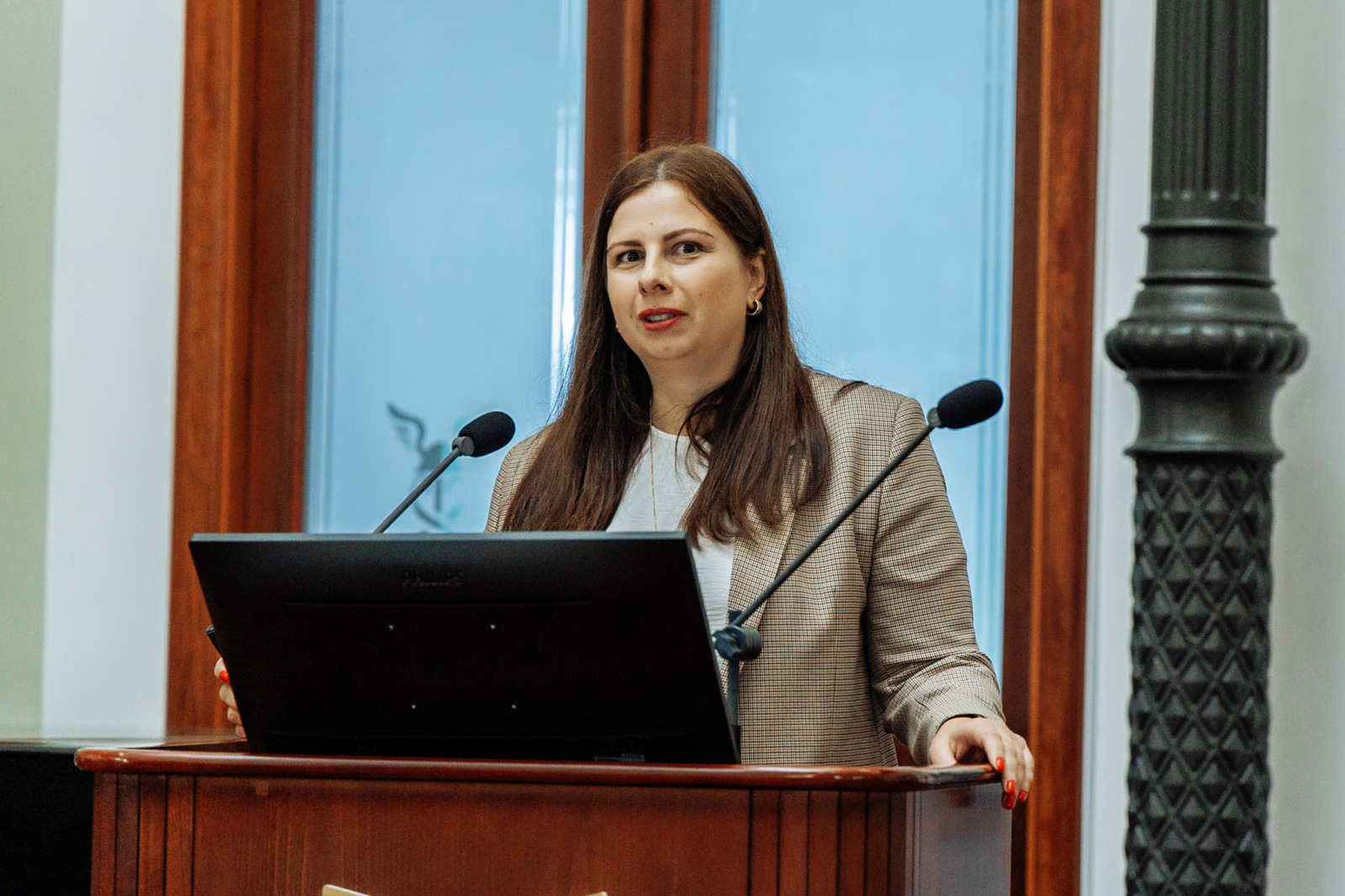 О сотрудничестве государства и предпринимательских союзов для формирования комфортной городской среды рассказала генеральный директор ООО «Консорциум Финансово-Промышленный Консалтинг» Татьяна Андрианова, а директор проектов компании по разработке строительных проектов Enter Construction Фуад Мамедов представил технологии, которые создают, буквально, произведения искусства из натурального камня, добываемого в Республике Северная Осетия — Алания: