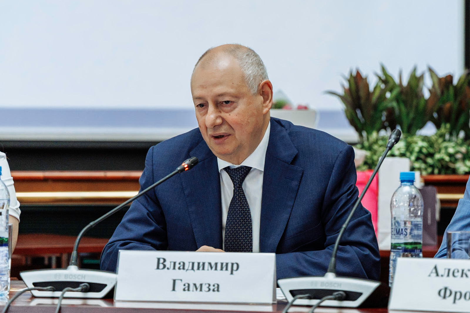 Стратегическое «напутствие» докладчикам дал председатель Совета по финансово-промышленной и инвестиционной политике, член Правления Торгово-промышленной палаты Российской Федерации (ТПП РФ), председатель Комитета Российского союза строителей (РСС) по промышленному строительству и реновации предприятий, член Комиссии по строительному комплексу и Комитета по финансовой политике, член Правления Российского союза промышленников и предпринимателей (РСПП) Владимир Гамза: