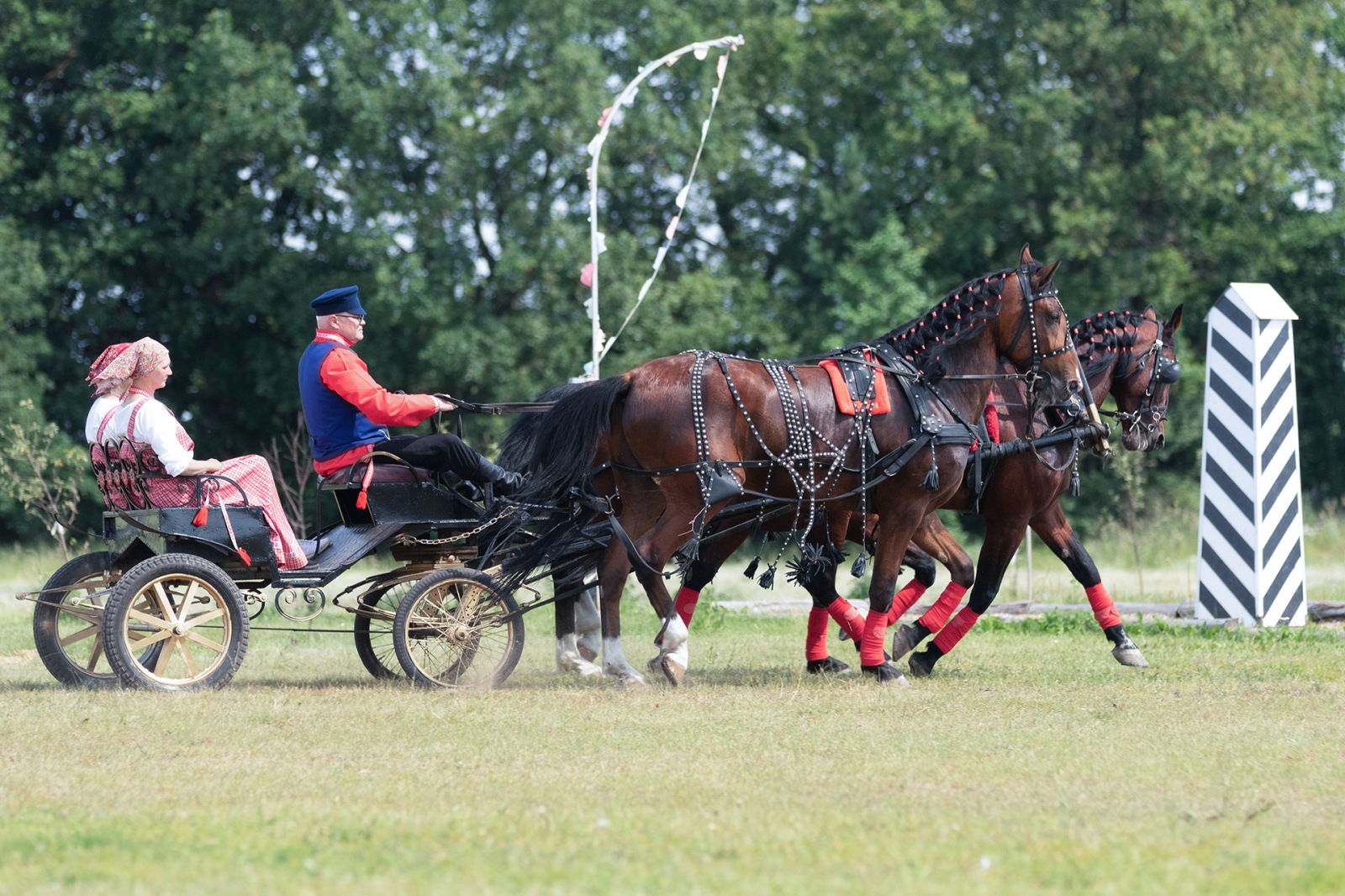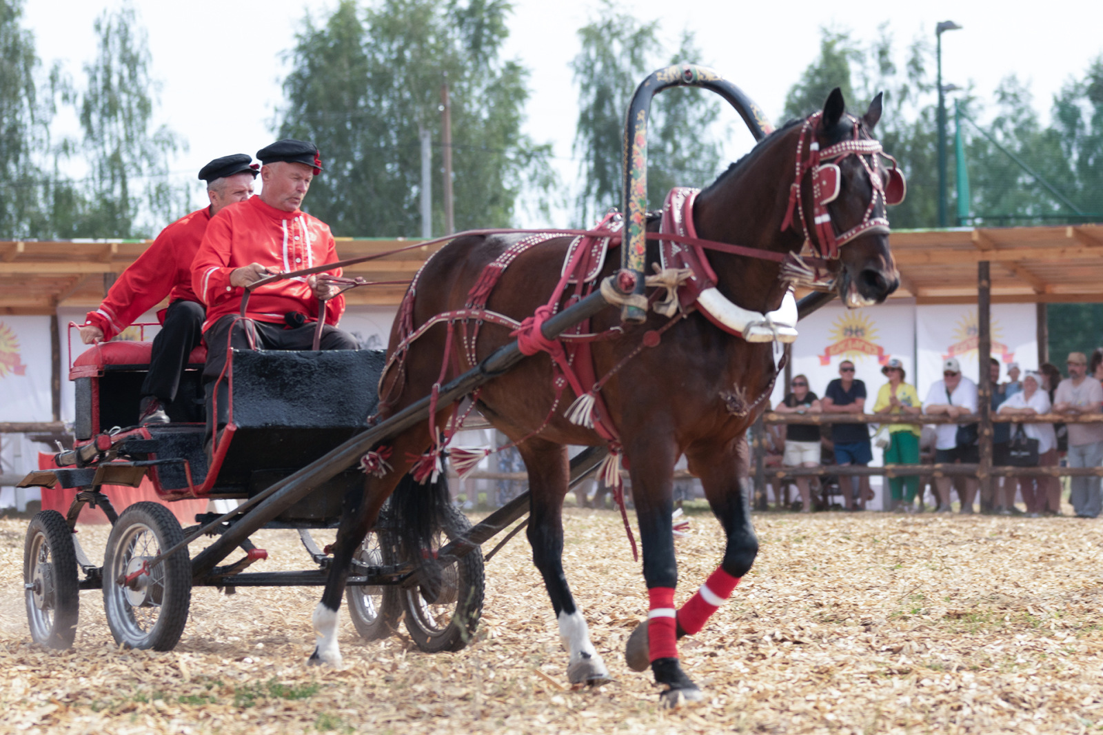 Не менее зрелищным событием Чемпионата стал Турнир по драйвингу - захватывающее состязание одиночных и парных упряжек. Всего выступало 8 одноконных и двух экипажей из Богдарни, Вельска, Вологды, Московской области.