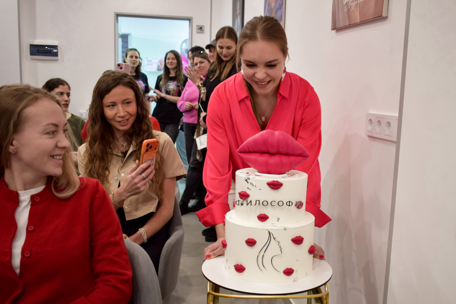 Праздник не обошёлся без фокусника, чьи трюки поражали воображение, и художника, запечатлевшего гостей. А кульминацией стал фирменный торт с губами — съедобная версия визитной карточки «Философи».