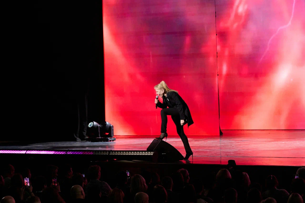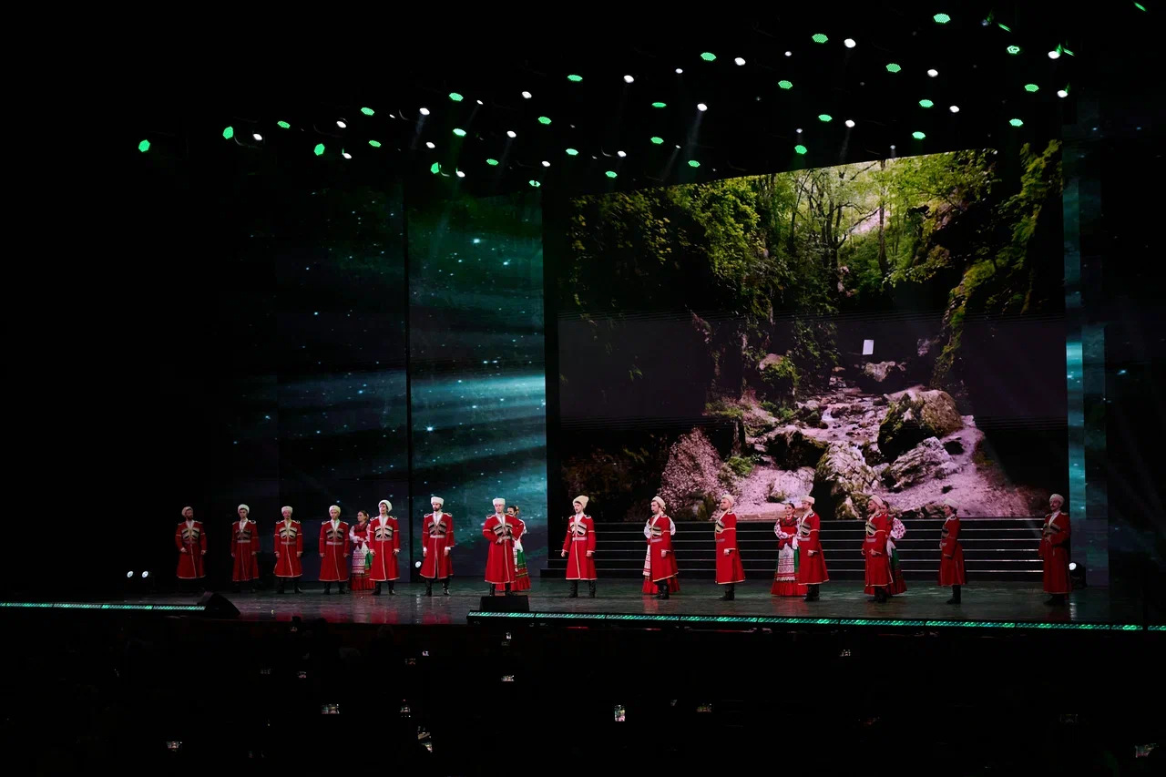 Легенды российской эстрады: народная артистка России Лариса Долина совместно со своими студентами кафедры эстрадно-джазового искусства МГИК, заслуженная артистка РФ Ольга Кормухина, заслуженный деятель искусств ЛНР Максим Дерский.