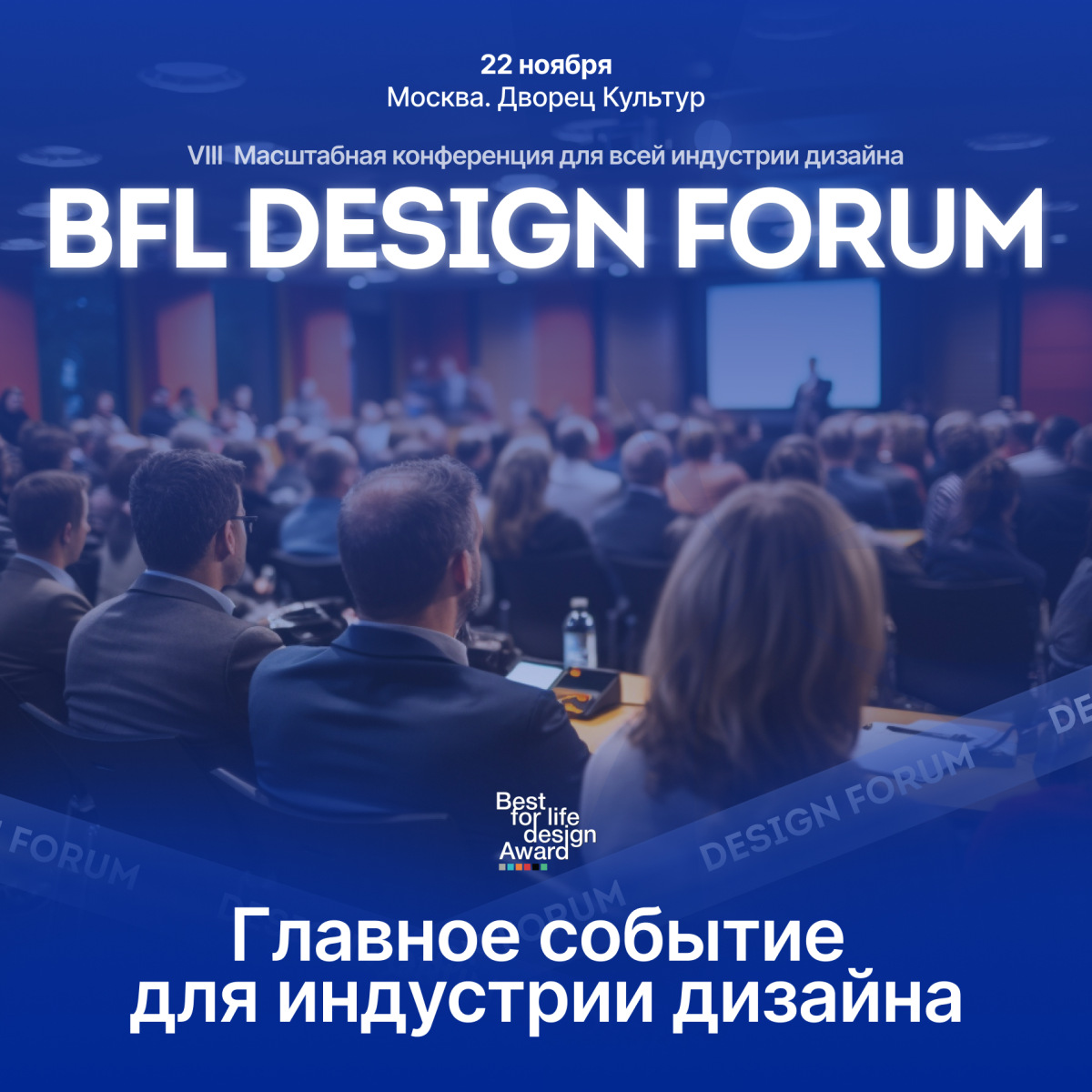 В рамках премии пройдёт BFL Design Forum — масштабная конференция для профессионалов креативного рынка и девелопмента. На площадке ожидается более 500 предпринимателей, представителей креативных индустрий, крупного и среднего бизнеса, дизайнеров, художников, маркетологов. В деловой программе запланированы дискуссии на такие актуальные темы, как: