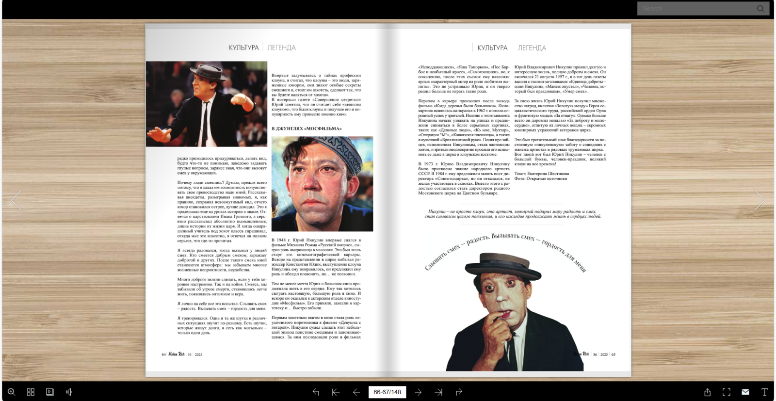 Юрий Владимирович Никулин! За этим именем скрывается целая эпоха, наполненная смехом, искусством и неподражаемым шармом. Его веселые цирковые репризы – «Насос», «Лошадки», «Бревно», «Телевизор» и многие другие – до сих пор вызывают улыбки у зрителей всех возрастов. А его роли в культовых фильмах, таких как «Пес Барбос и необычный кросс», «Самогонщики», «Кавказская пленница», «Бриллиантовая рука», «Старики-разбойники» и «Они сражались за Родину», навсегда останутся в сердцах поклонников.
