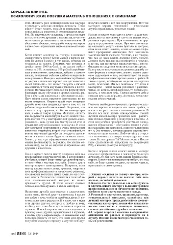 его уважают коллеги и знают люди, то он с пер- 1. Клиент «садится на голову» мастеру, кото-